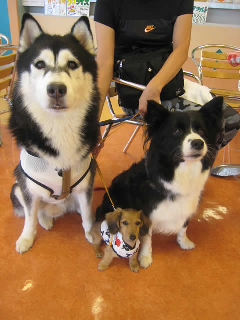 ハスキーのジャックくん&ミニチュアダックスの姫ちゃん&ボーダーコリーのスーちゃん